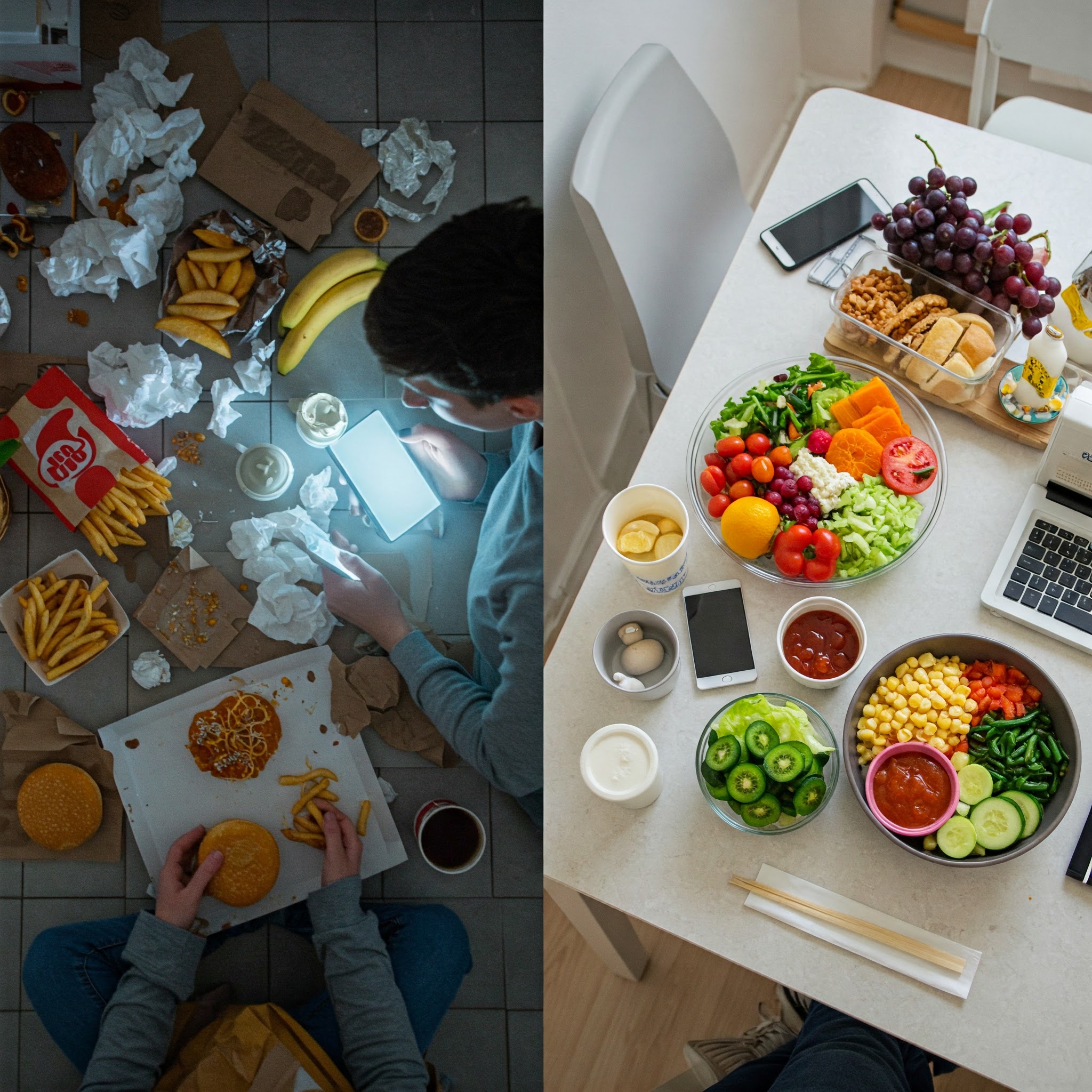 | 음식 선택 | 영양과 만족감을 고려하여 선택 | 감정이나 습관에 따라 즉흥적으로 선택 |